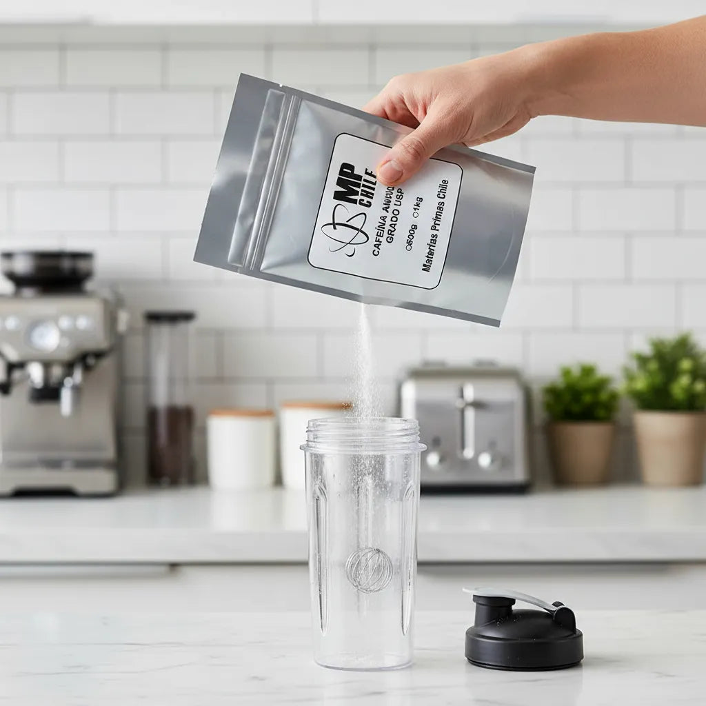 La cafeína es un estimulante potente. 🧠⚡ Se debe manipular con cuidado, usando balanza de precisión para una dosificación responsable. ❗